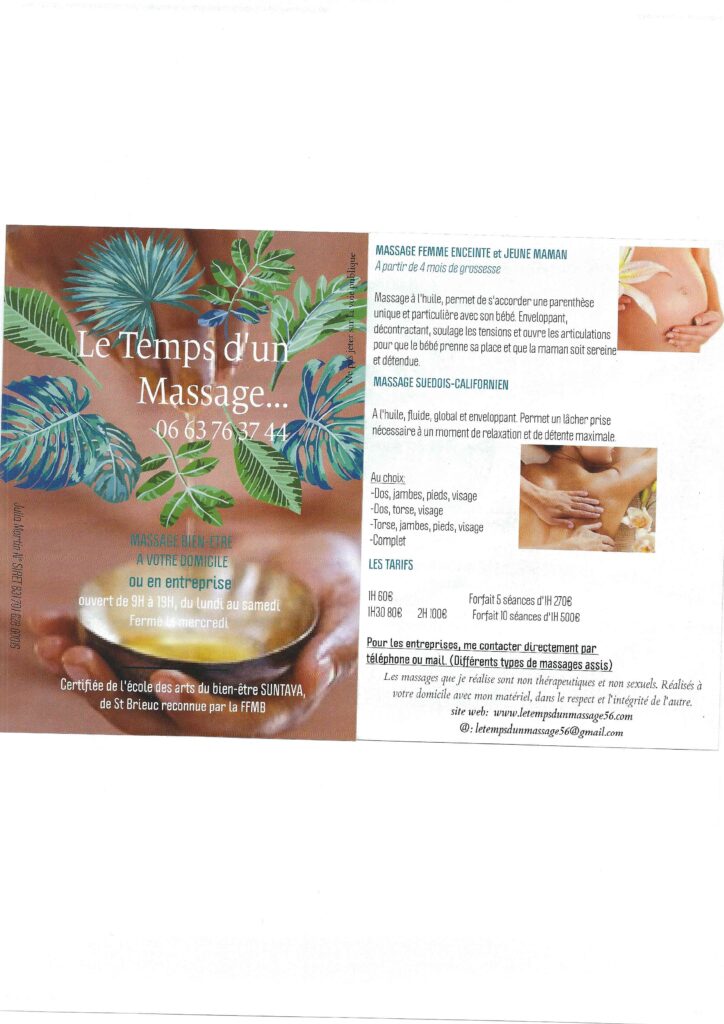 A l'écoute de vos attentes, j'adapterai le massage à vos besoins.